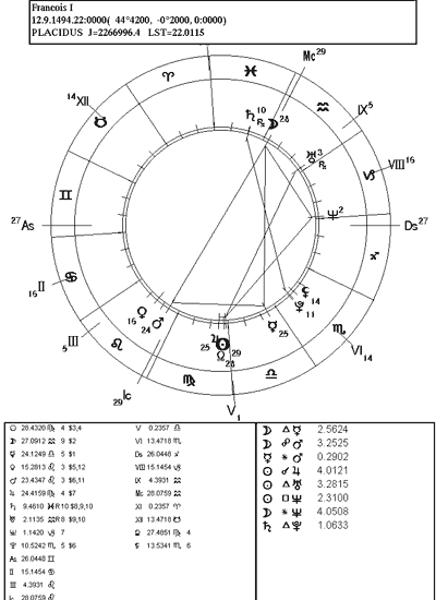 прямо между натальными позициями Венеры и Марса Франциска I.