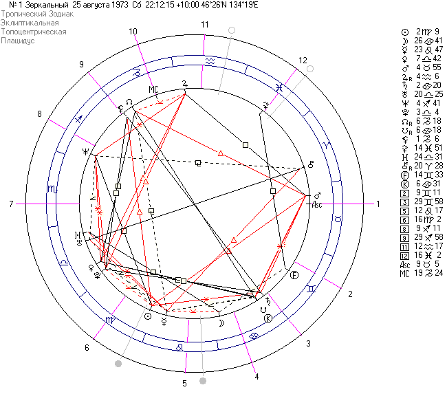 Таким образом, строим гороскоп с "зеркальной луной", в котором Солнце станет произвольно согласно эфемеридам и расчёту.