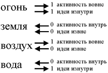 | Стихия | огонь | свет [эфир] | воздух | тьма [эфир] | земля | вода |