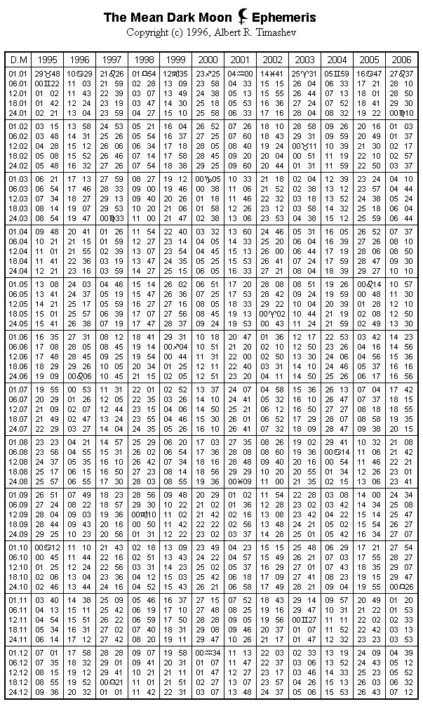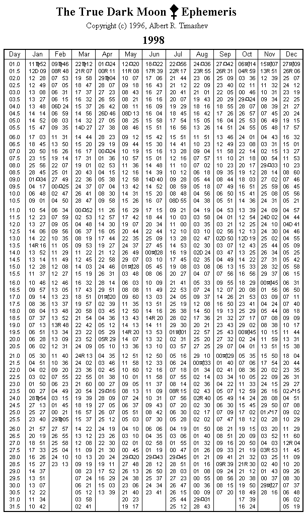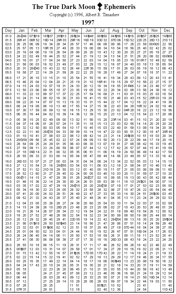 Эфемериды Истинной Черной Луны (Друдж) представляют