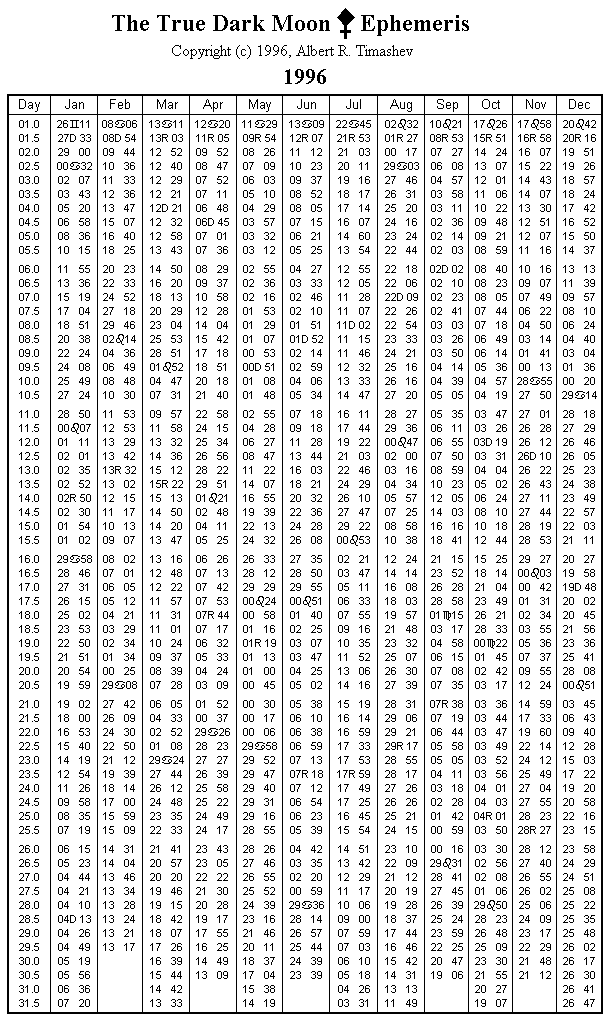 основания считать данные эфемериды Истинной Черной Луны абсолютно точными.