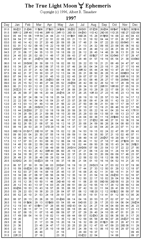 Эфемериды Средней Белой Луны (Селены) вычислены