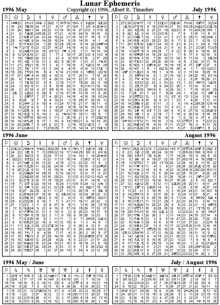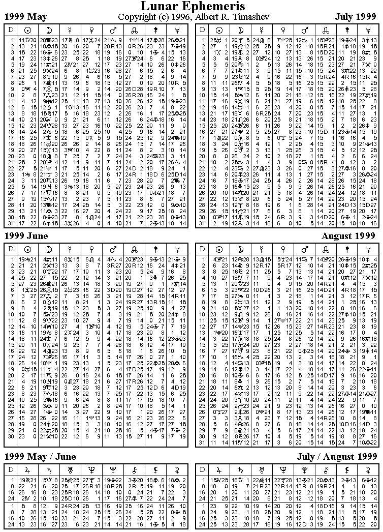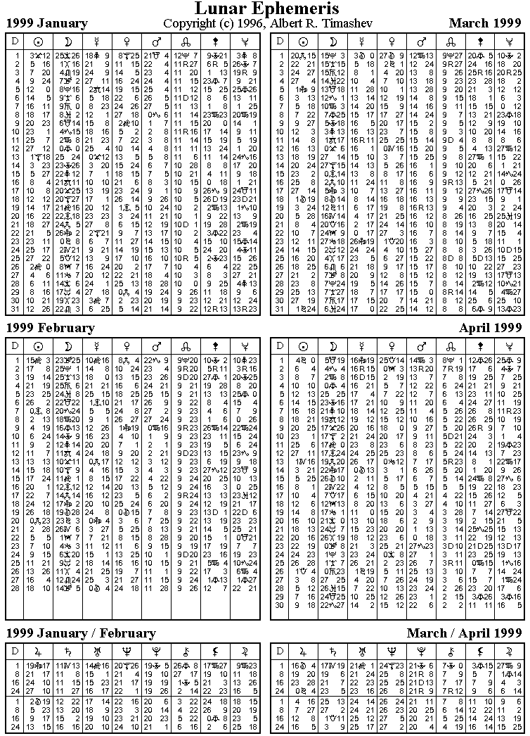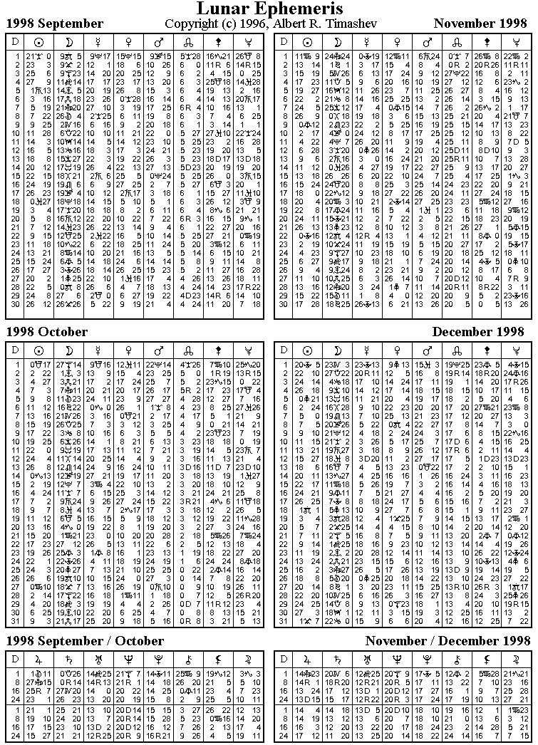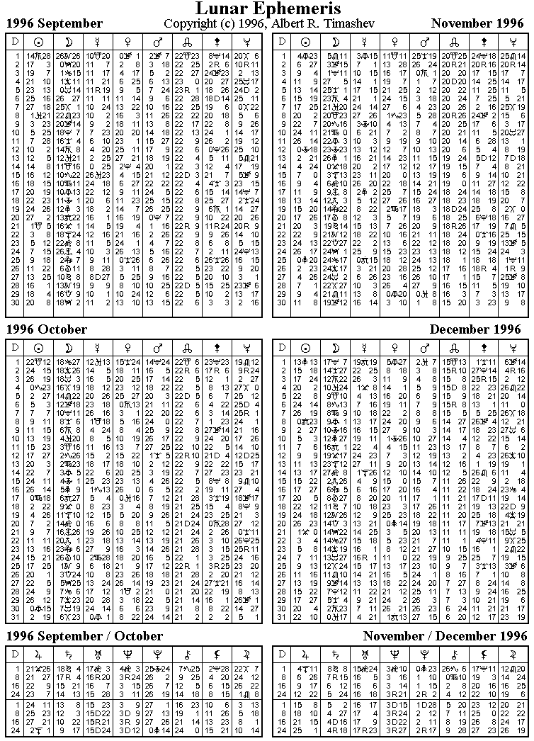 предлагаются лунные эфемериды, дающие координаты Солнца, Луны,