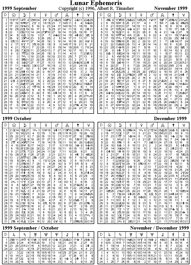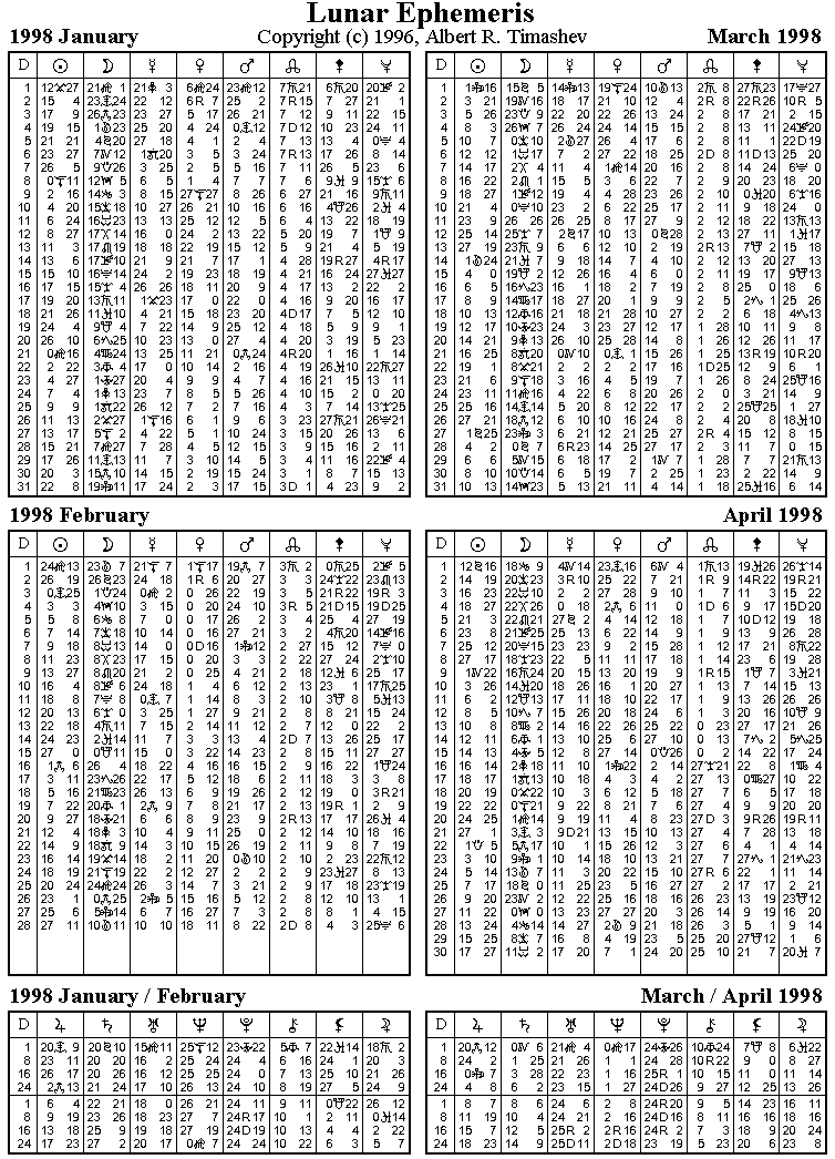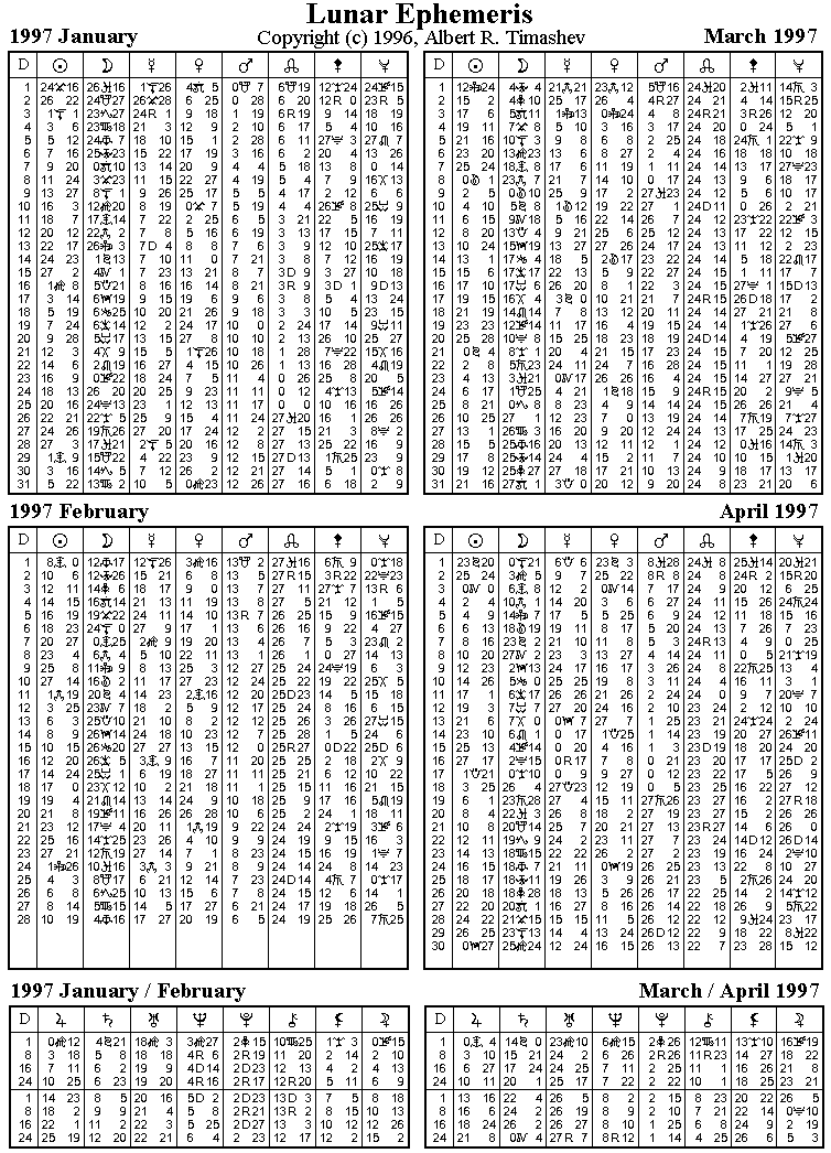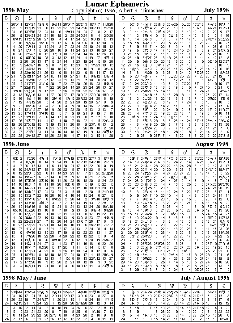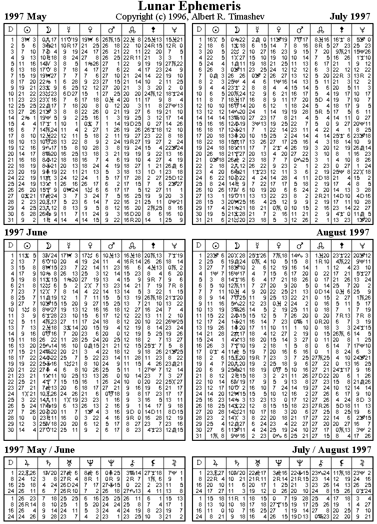 предлагаются лунные эфемериды, дающие координаты Солнца, Луны,