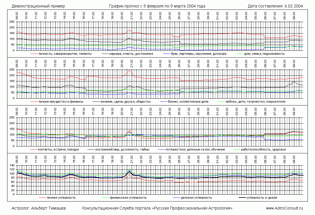 Прогноз на месяц, в данном случае, с 9 февраля по 9 марта 2004 года выполнен для реальной клиентки, данные рождения которой не разглашаются в силу соблюдения конфиденциальности.