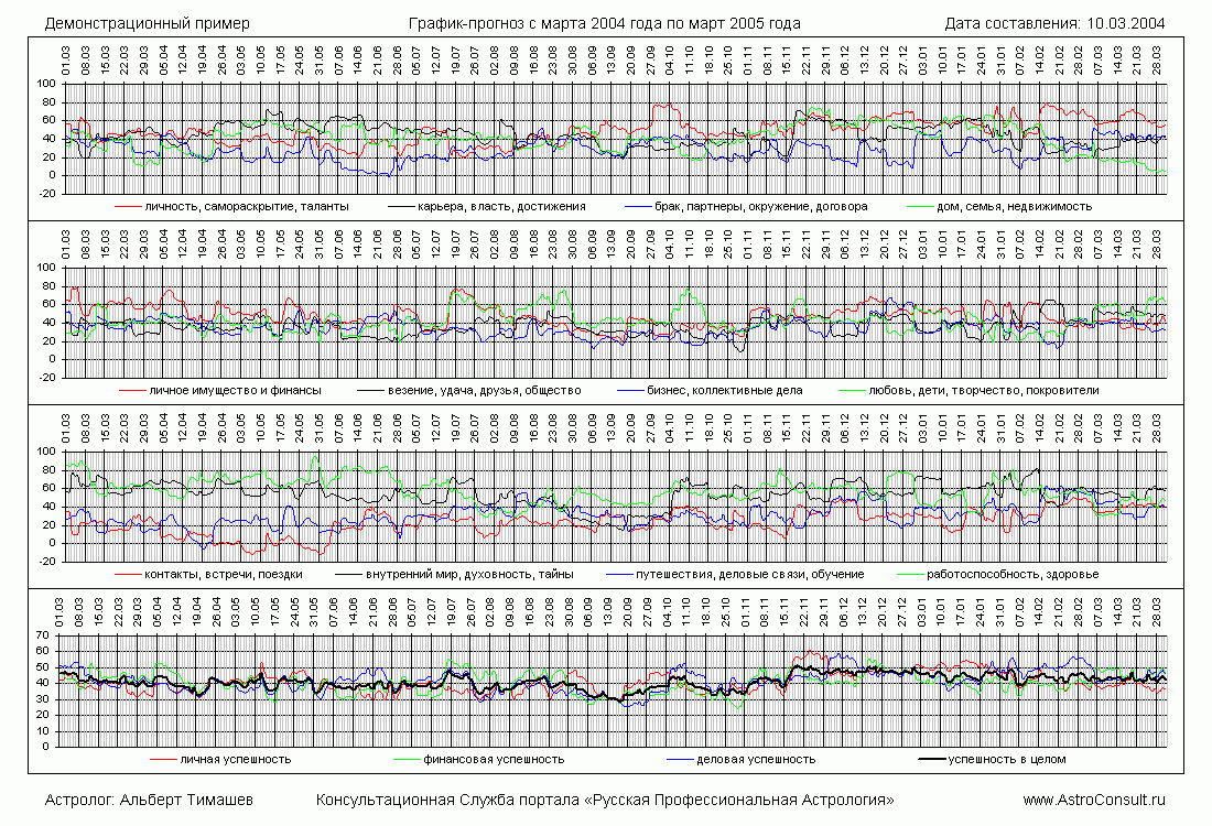 Прогноз на год, в данном случае, с марта 2004 года по март 2005 года выполнен для реального, постоянного клиента — руководителя крупной коммерческой структуры, данные рождения которого не разглашаются в силу соблюдения конфиденциальности.