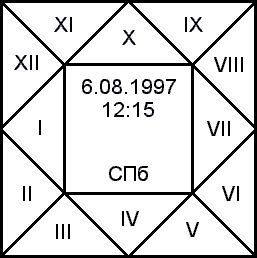 дома, кульминирующая вверху - на границе десятого дома, заходящая -