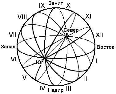 12 равных долек, образованных "разрезанием" небосвода по оси север-юг.