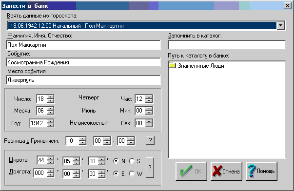 Окно ввода данных по событию. Позволяет задать первоначальные данные для построения карт. Заранее сохраненные карты можно подгружать из банка событий. Ввод координат может быть осуществлен как из справочника, так и вручную.