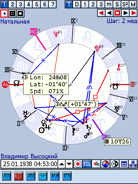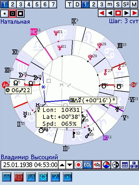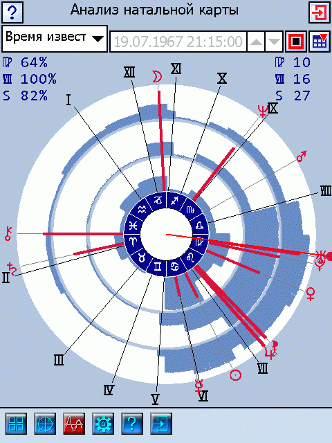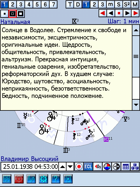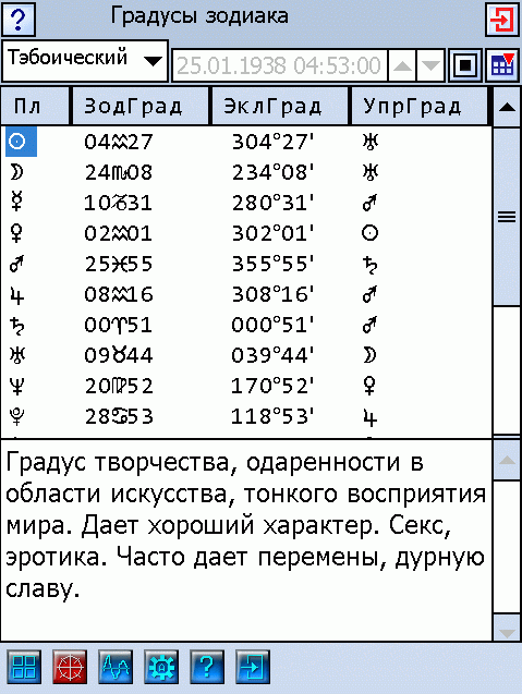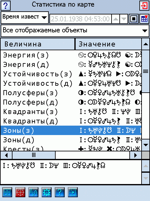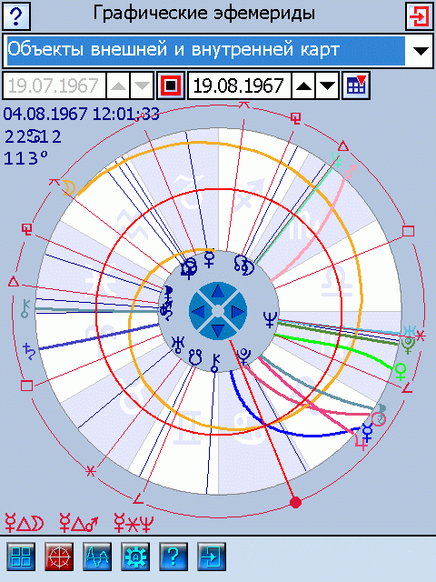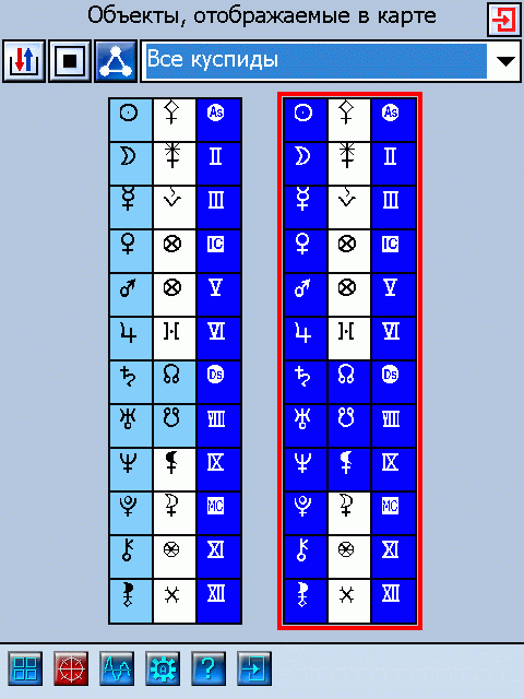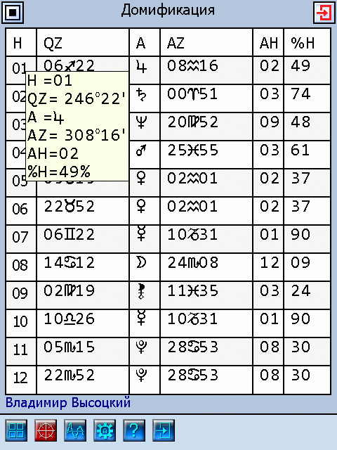 Буквально одним нажатием пера можно получить расширенную информацию по расположению куспидов домов и их управителям как в домах, так и знаках (стоянках).